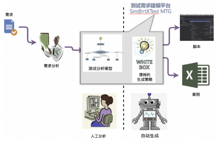 产品通过业务规则分析、、流程图分析等方式对测试需求进行建模,,,通过案例生成引擎生成案例,,,,生成案例效率高,,,,且生成的案例能够在保证测试覆盖度的基础上减少案例冗余,,案例质量高,,,可读性强,,,,可直接用于测试执行。。。。