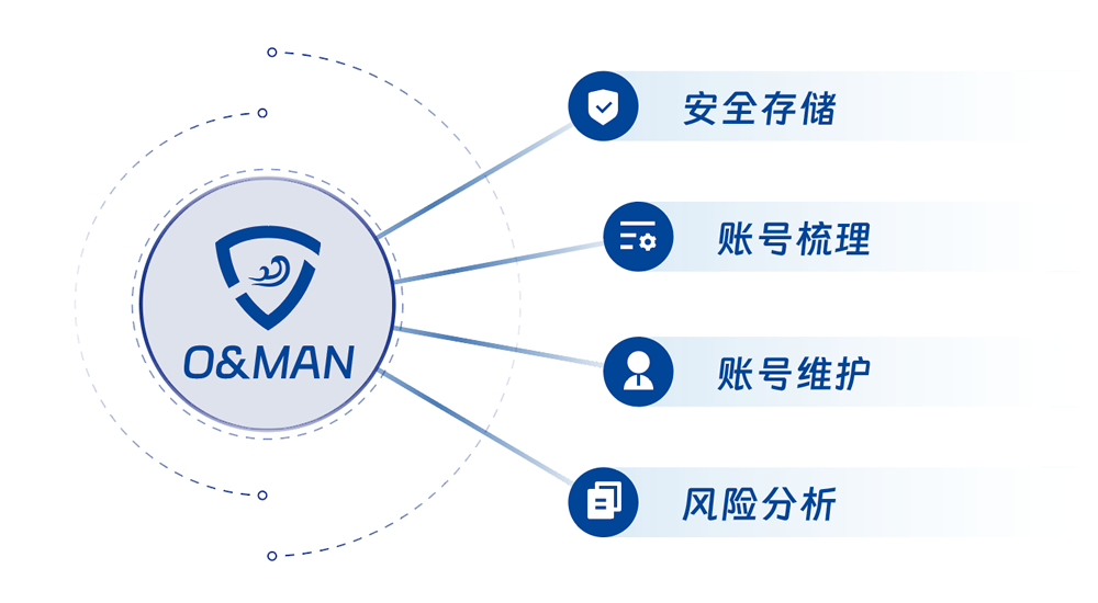 实现了从账号梳理到账号存储全生命周期的闭环管理,,,,包括账号梳理、、、、风险分析、、、、账号存储等账号管理功能。。。账号梳理模块,,,可以自动化的按照网段批量地进行账号以及账号属性的采集;风险分析可以按照内置的风险检测规则、、、自定义的弱密码规则等进行账号风险的分析,,,发现账号台账中的弱密码账号、、、、提权账号等账号风险问题,,通过账号维护模块中的账号工单、、、、密码修改等进行账号的维护管理以解决账号风险;账号存储可以存放进具备国密加密芯片,,,独立硬件部署的密码保险箱,,,,以确保账号密码存储的安全。。。
