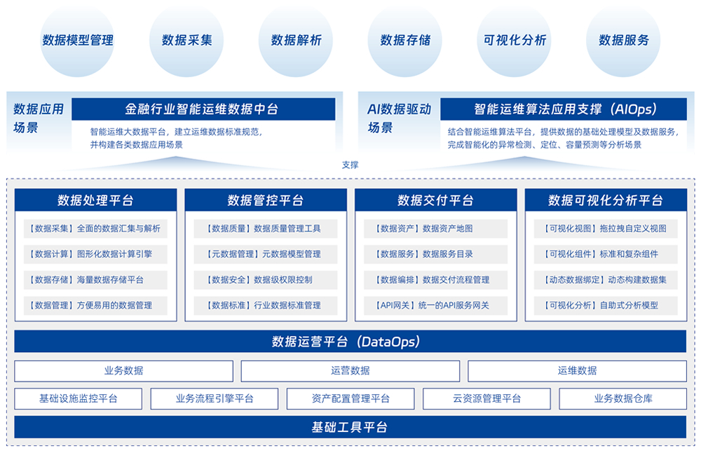 通过平台整合各种运维工具的数据和服务能力,,在保证数据隐私和安全的前提下,,通过大数据技术等手段,,,,来解决 IT 系统运行过程中产生的海量数据分析问题,,并将分析结果通过数据共享服务提供给各类上层应用,,,帮助 IT 运维和管理人员全面了解系统运行状态,,提升可用性。。。。